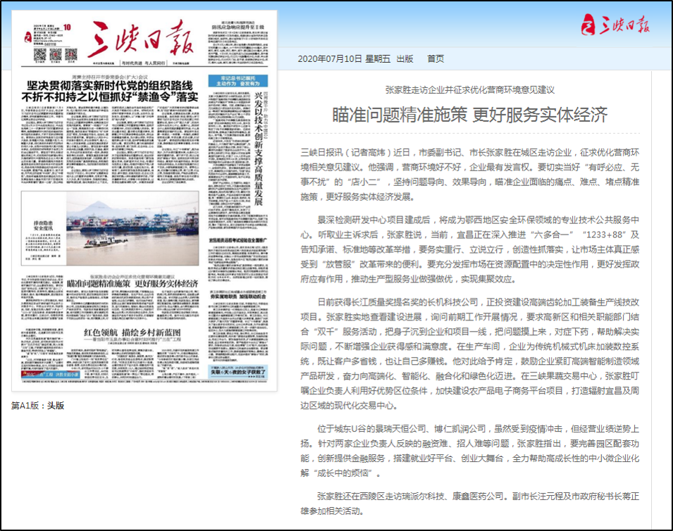 三峽日報報道我公司:瞄準問題精準施策 更好服務實體經(jīng)濟