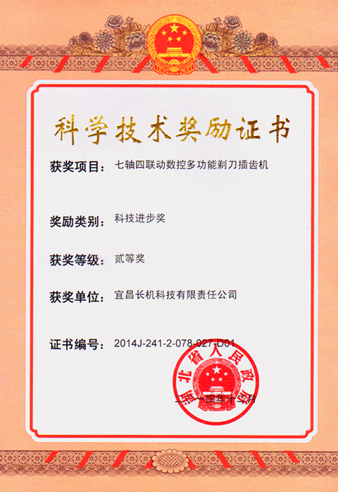 宜昌長(zhǎng)機(jī)科技公司七軸四聯(lián)動(dòng)數(shù)控多功能剃刀插齒機(jī)獲省“科技進(jìn)步獎(jiǎng)”二等獎(jiǎng)