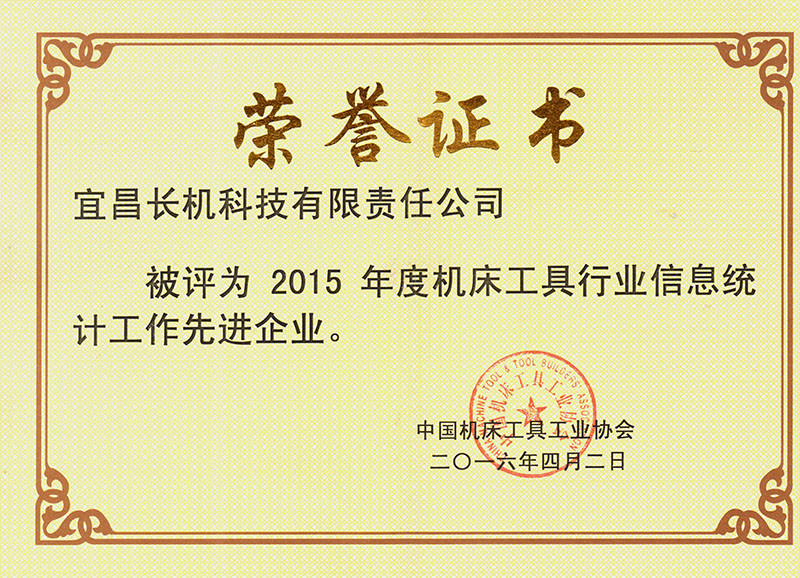 宜昌長(zhǎng)機(jī)科技有限責(zé)任公司獲得由中國(guó)機(jī)床工具工業(yè)協(xié)會(huì)授予的“2015年度機(jī)床工具行業(yè)信息統(tǒng)計(jì)工作先進(jìn)企業(yè)”榮譽(yù)。