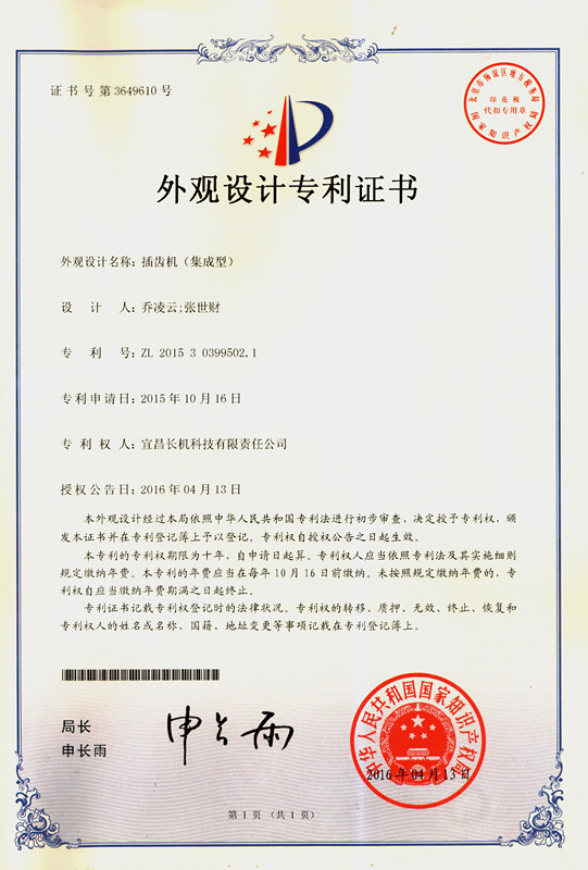 公司“一種新型斜齒插齒機構”獲實用新型專利、“插齒機(集成型)”獲外觀設計專利,按公司規(guī)定,獎勵喬凌云同志2000元以資鼓勵。