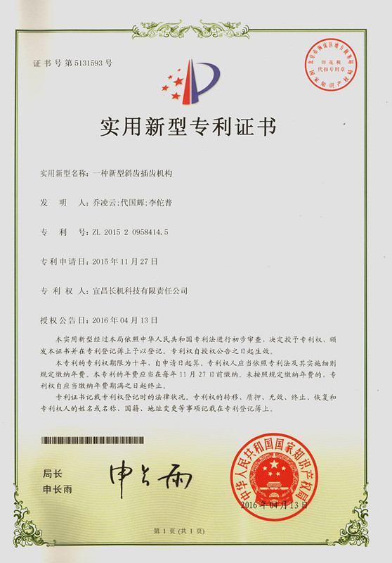 公司“插齒機(jī)行程自動調(diào)整裝置”獲實(shí)用新型專利,按公司規(guī)定,獎勵喬凌云同志1000元以資鼓勵。