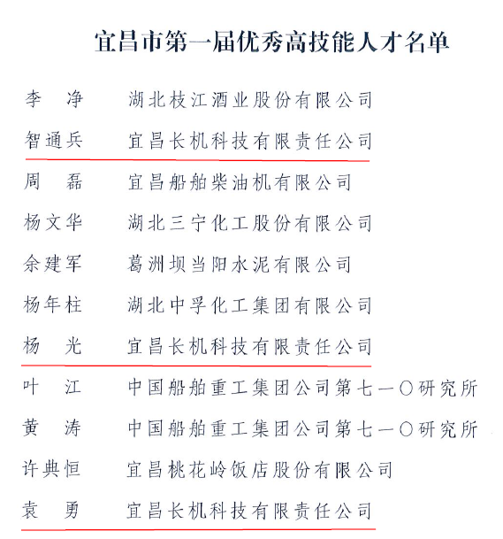 智通兵、楊光、袁勇獲宜昌市第一屆“優(yōu)秀高技能人才”榮譽(yù)