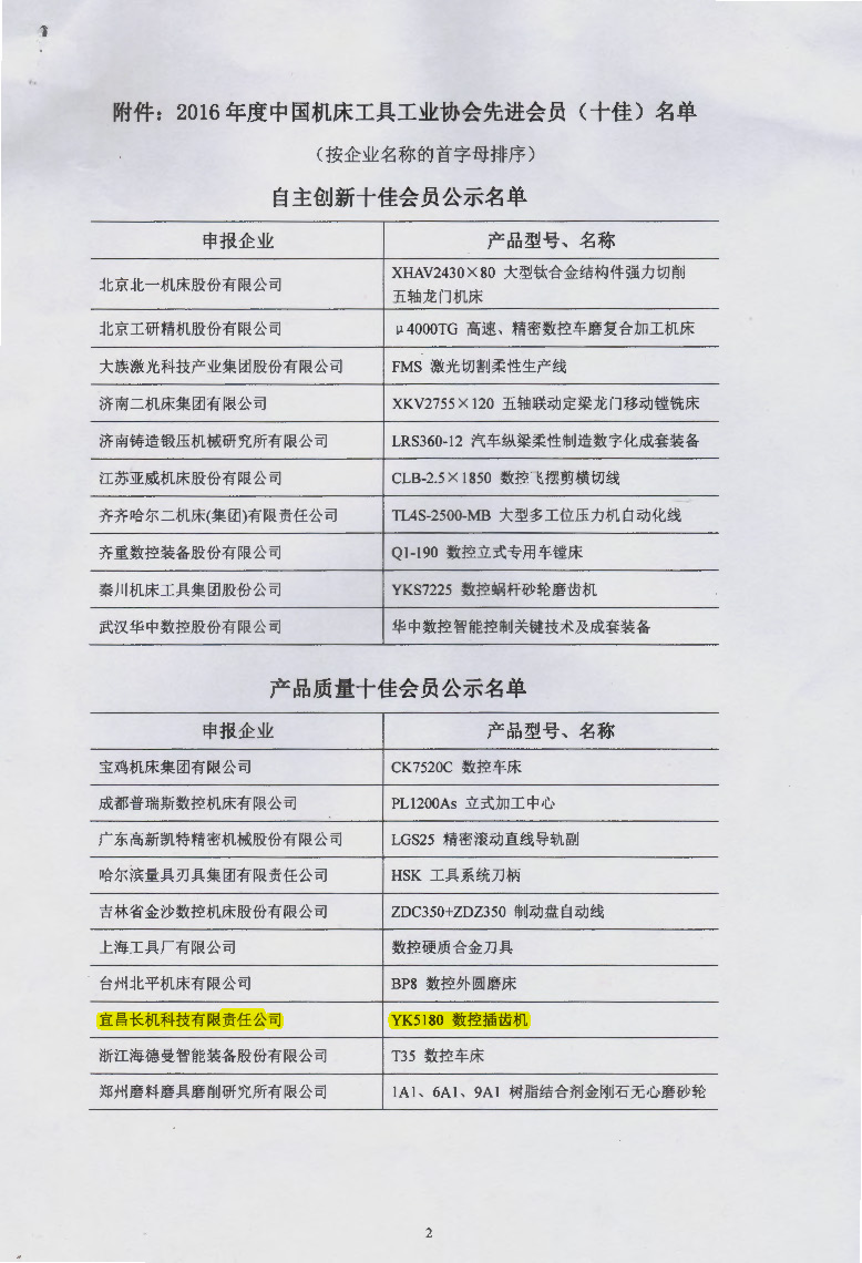 公司獲2016年度中國機(jī)床工具工業(yè)協(xié)會先進(jìn)會員(十佳)榮譽