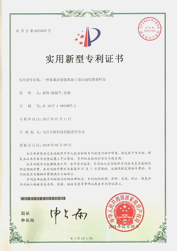 宜昌長機(jī)科技公司獲一項(xiàng)發(fā)明專利、六項(xiàng)實(shí)用新型專利。