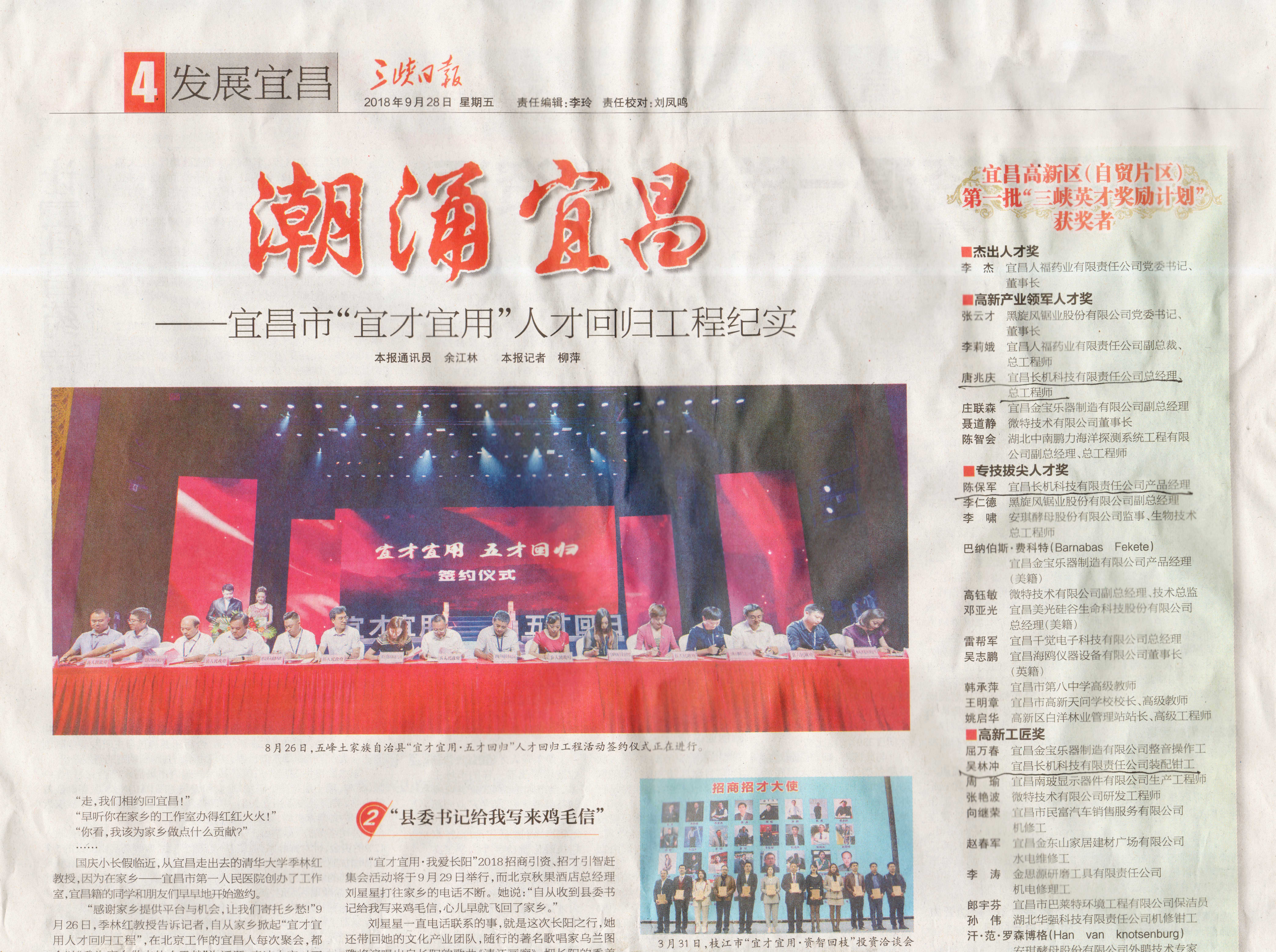 熱烈祝賀公司唐兆慶、陳保軍、吳林沖等三位同志入選宜昌高新區(qū)第一批“三峽英才獎(jiǎng)勵(lì)計(jì)劃”工程