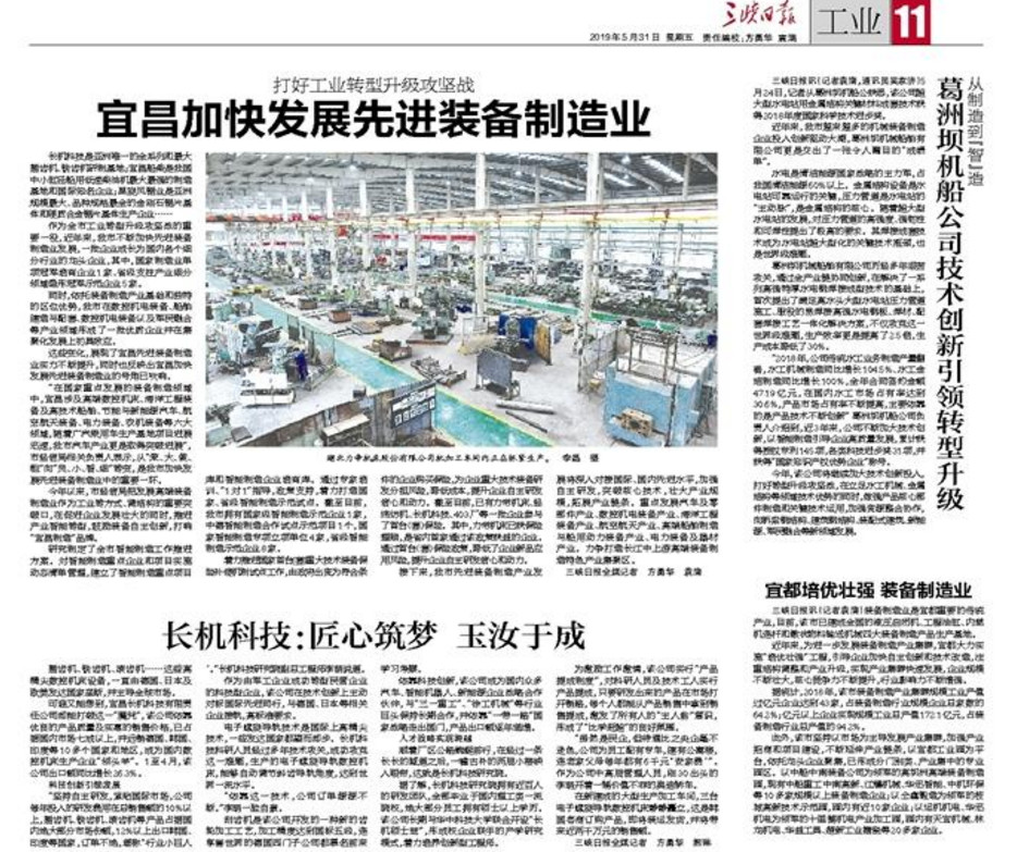 三峽日報報道我公司:長機(jī)科技:匠心筑夢 玉汝于成