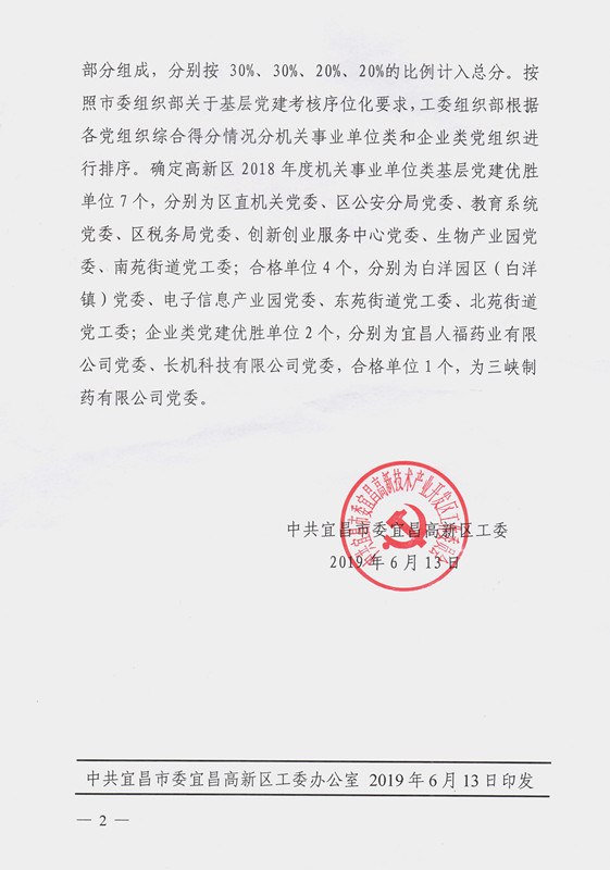 公司在高新區(qū)2018年度基層黨建考核中被評定為優(yōu)勝單位