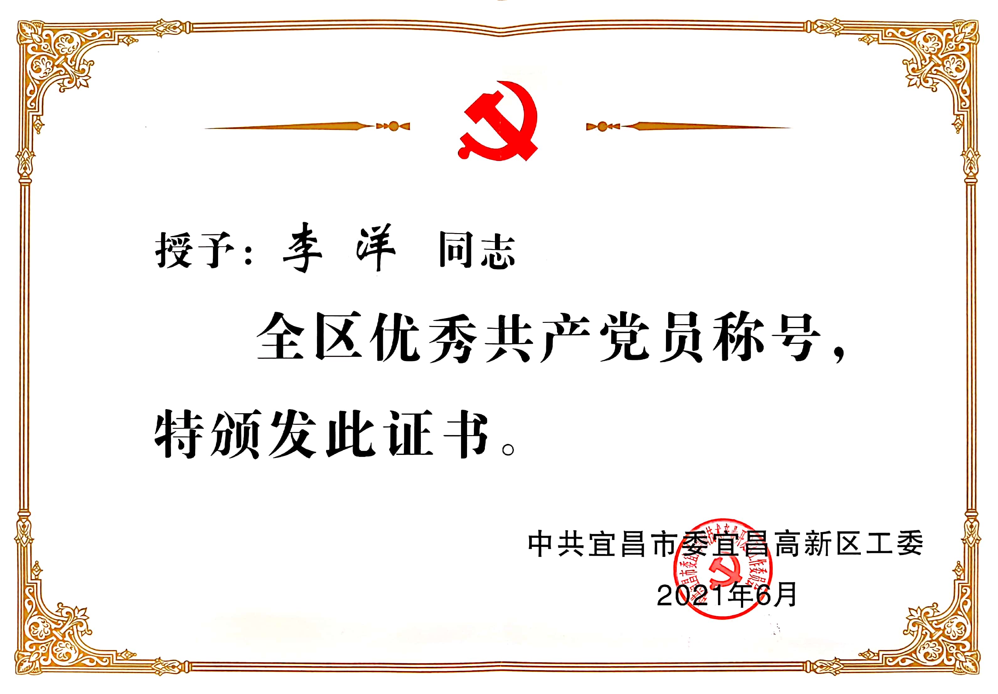 李洋榮獲“全區(qū)優(yōu)秀共產(chǎn)黨員”稱號(hào)