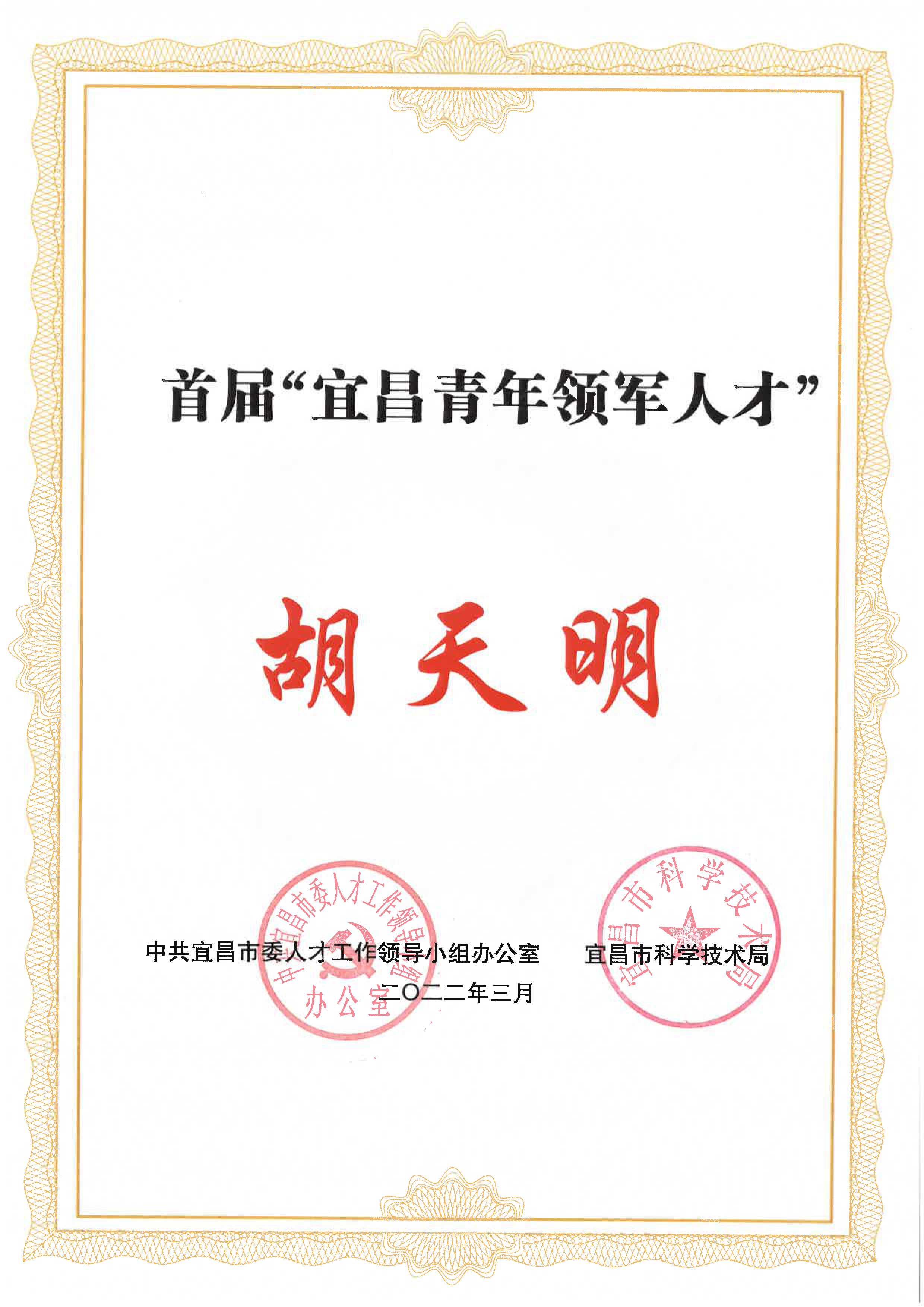 胡天明入選首屆“宜昌青年領(lǐng)軍人才”