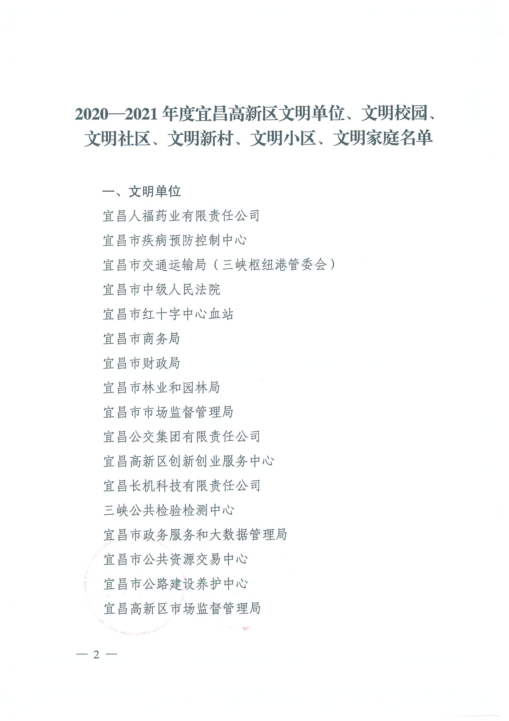 公司被評為2020-2021年度宜昌高新區(qū)文明單位
