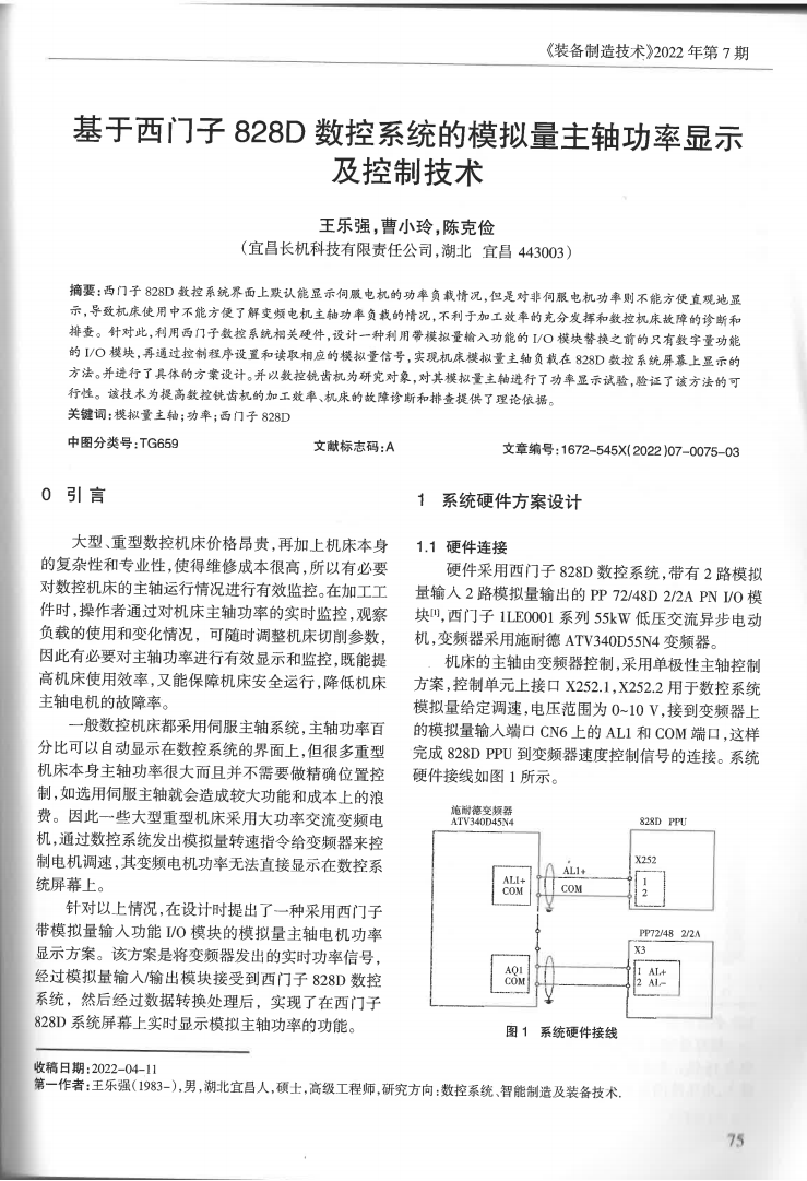 王樂強(qiáng)、曹小玲、陳克儉在《裝備制造技術(shù)》雜志上發(fā)表論文