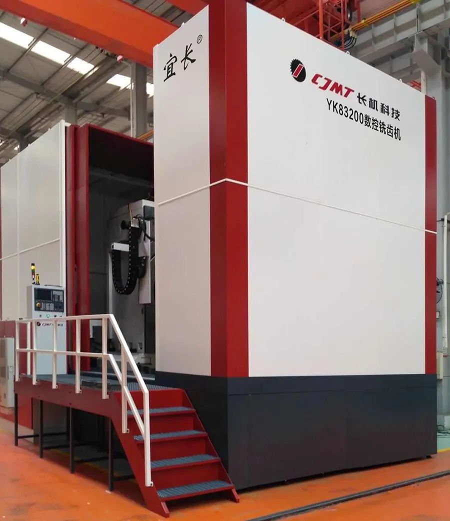 宜昌長機(jī)科技有限責(zé)任公司研發(fā)的YK83200(A)數(shù)控銑齒機(jī),主要適用于風(fēng)電、工程機(jī)械、礦山機(jī)械、冶金機(jī)械等回轉(zhuǎn)支承相關(guān)行業(yè)的行星減速機(jī)、增速箱、偏航軸承內(nèi)外齒圈及變漿軸承內(nèi)齒齒廓等中大型內(nèi)外圓柱直齒輪、斜齒輪的加工。機(jī)床可滿足高效干式銑削加工,具有綠色、環(huán)保、高效、加工尺寸穩(wěn)定等特點(diǎn)。