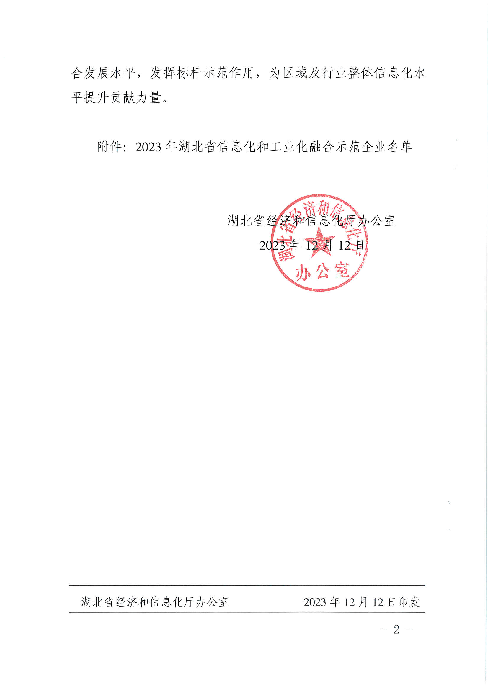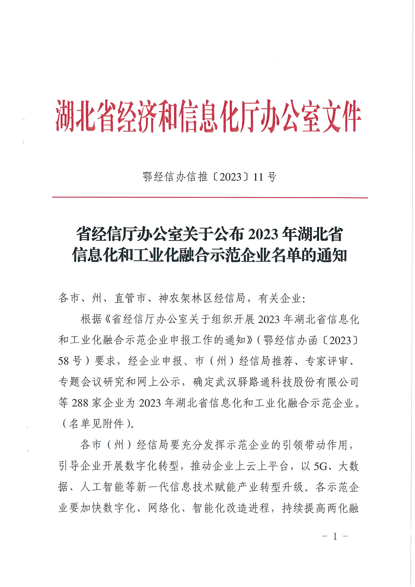 我公司榮獲湖北省信息化和工業(yè)化融合示范企業(yè)