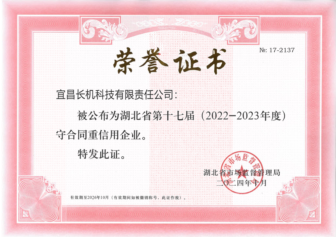 公司被評(píng)為2022-2023年度湖北省守合同重信用企業(yè)