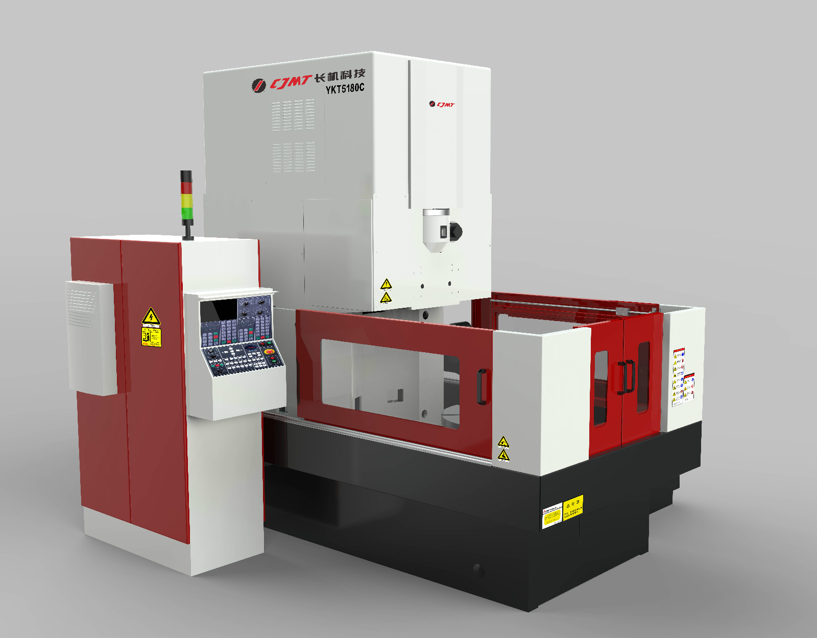2.機床具備刀具提拉功能、工作臺采用滾動軸承定心。主運動由交流變頻電機驅(qū)動,切削時通過交流伺服電機驅(qū)動立柱移動實現(xiàn)徑向進(jìn)給;因機床具備刀架提拉機構(gòu),特別適合加工深孔內(nèi)齒,同時大幅提升雙聯(lián)齒輪及不同齒厚的內(nèi)、外齒加工效率。可根據(jù)切削需要設(shè)置循環(huán)次數(shù)及每次循環(huán)的徑向切入量。